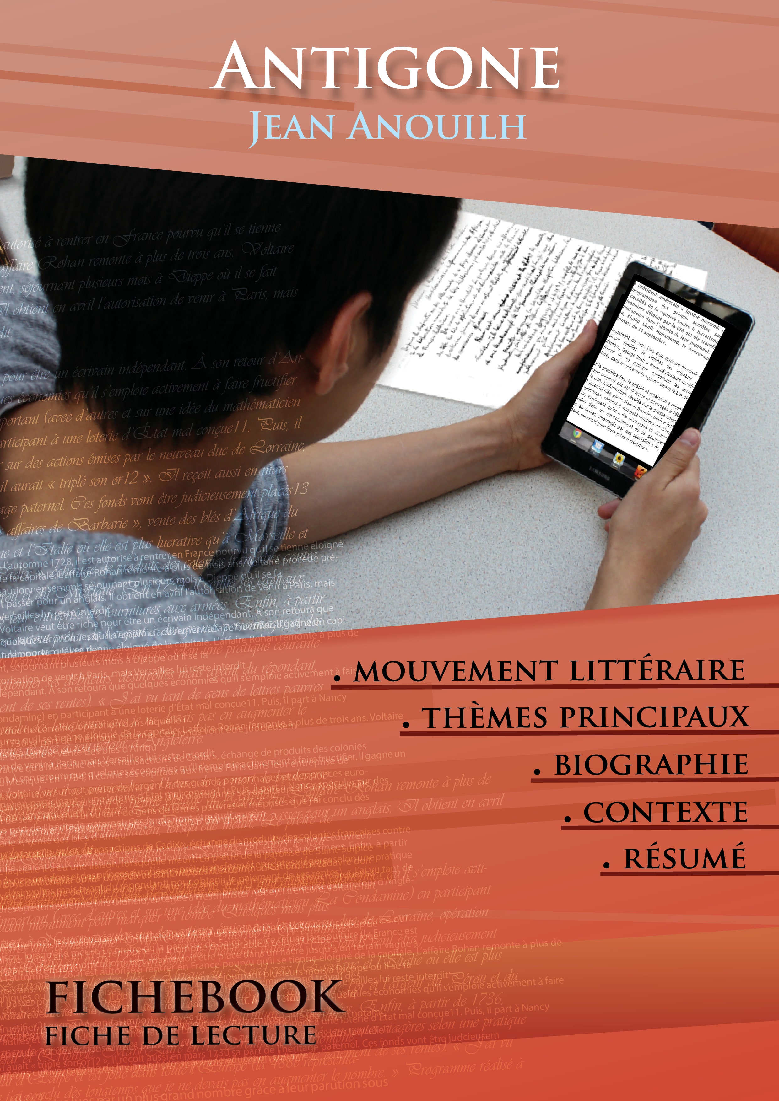Toutapprendre / Les éditions de l'Ebook malin La collection « Connaître une oeuvre » vous offre la possibilité de tout savoir de la pièce Antigone de Jean Anouilh grâce à une fiche de lecture aussi complète que détaillée. La rédaction, claire et accessible, a été confiée à un spécialiste universitaire.Notre travail éditorial vous offre un grand confort de lecture, spécialement développé pour la lecture numérique.Cette fiche de lecture répond à une charte qualité mise en place par une équipe d’enseignants.Ce livre numérique contient un sommaire dynamique, la biographie de Jean Anouilh, la présentation de la pièce, le résumé détaillé (scène par scène), les raisons du succès, les thèmes principaux et l'étude du mouvement littéraire de l’auteur.